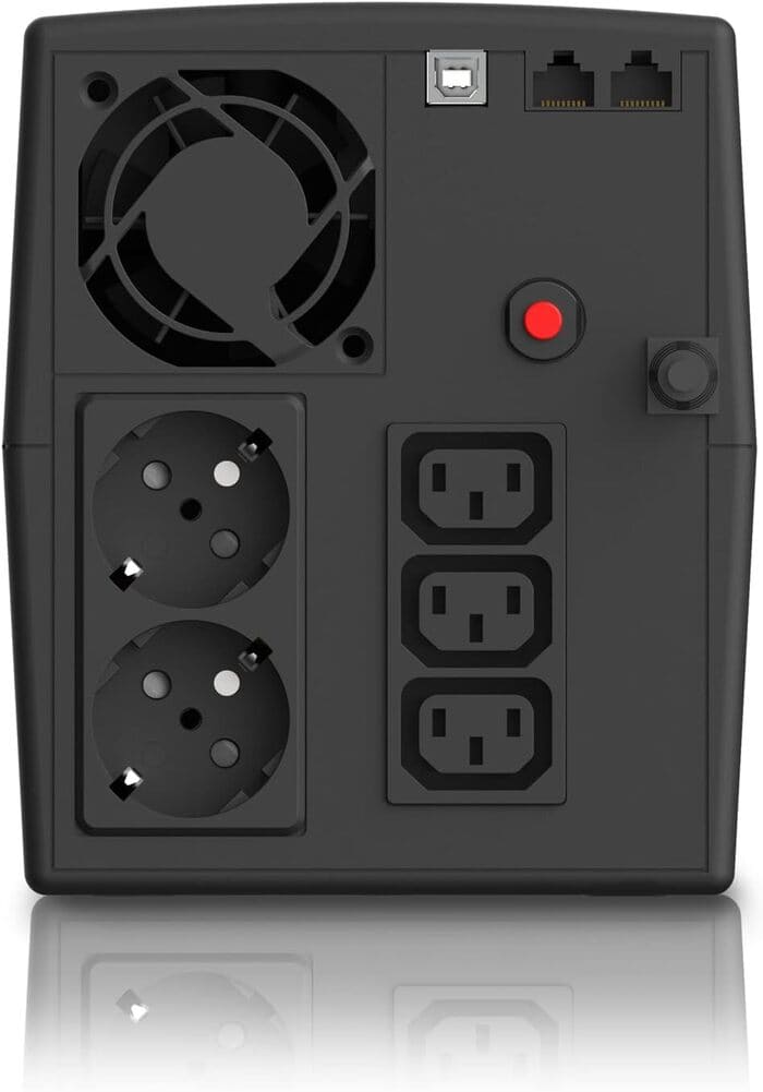 Die Funktionalität der EPYC NYTRO überzeugt durch eine ausgereiften Line-Interactive-Technologie mit automatischer Spannungsregulierung (AVR), die Spannungsschwankungen eigenständig korrigiert, ohne den Batteriebetrieb aktivieren zu müssen. Die reine Sinuswelle garantiert störungsfreien Betrieb sensibler PFC-Geräte und eliminiert die bei günstigen Modellen typischen Kompatibilitätsprobleme mit modernen Gaming-PCs und Konsolen. Mit einer Schaltzeit unter 10 Millisekunden gewährleistet das System eine unterbrechungsfreie Versorgung auch kritischer Anwendungen. Die fünf Ausgänge (2x Schuko + 3x IEC) bieten flexible Anschlussmöglichkeiten für verschiedene Gerätetypen, während der USB-Port eine Computer-Kommunikation und automatisches Herunterfahren ermöglicht. Zusätzlich schützen RJ11/45-Ports Netzwerk- und Telefonleitungen vor Überspannungen. Schwächen zeigen sich im kontinuierlichen Ventilator-Betrieb, der unabhängig von Last oder Betriebszustand läuft und keine intelligente Steuerung oder Eco-Modi bietet. Die Autonomie bei hohen Lasten begrenzt sich auf 7-10 Minuten bei 900W, was für längere Überbrückungen unzureichend ist. Fehlende Hot-Swap-Funktionen und eine nicht segmentierbare Batterie-Priorisierung schränken professionelle Einsatzszenarien ein.