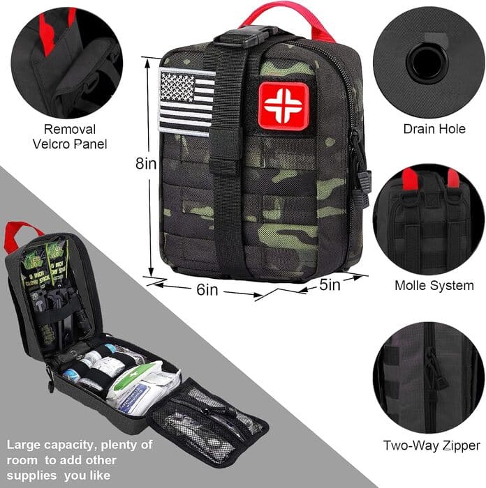 Im Gebrauch überzeugt das Set durch eine klare funktionale Grammatik, die auf intuitive Bedienbarkeit ausgelegt ist. Das Etui lässt sich vollständig aufklappen, die Innenarchitektur führt den Nutzer fast automatisch zu den relevanten Komponenten. Der symmetrische Reißverschluss, die elastischen Fixierungen und die MOLLE-Kompatibilität schaffen eine modulare Logik, die das Set auch außerhalb klassischer Outdoor-Kontexte sinnvoll einsetzbar macht – etwa im Fahrzeug oder bei zivilen Notfallübungen. Kleinere Schwächen in Ergonomie und Detailausführung, etwa die enge Fächerstruktur oder das Fehlen einer Arretierung im geöffneten Zustand, beeinträchtigen die Gesamtfunktion nicht wesentlich, zeigen jedoch das Entwicklungspotenzial hin zu einem taktisch optimierten System.