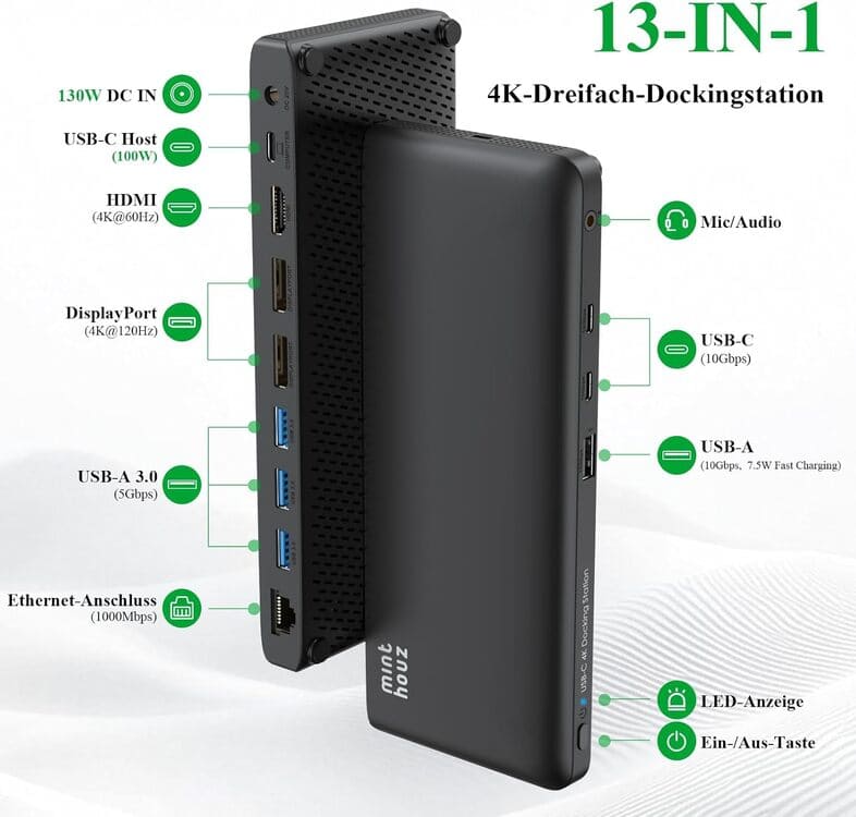 Das Produkt „Minthouz USB-C Docking Station 12-in-1“ hat sich im Rahmen unseres verbraucherorientierten Praxistests unter standardisierten Bedingungen nach hausinterner PM-Norm qualifiziert. Die Analyse umfasst zentrale qualitative- und quantitative Bewertungsbereiche und Prüfparameter.